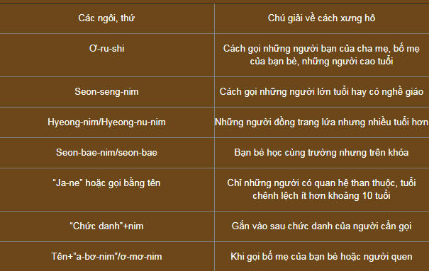 xưng hô ngôi thứ kiểu hàn quốc